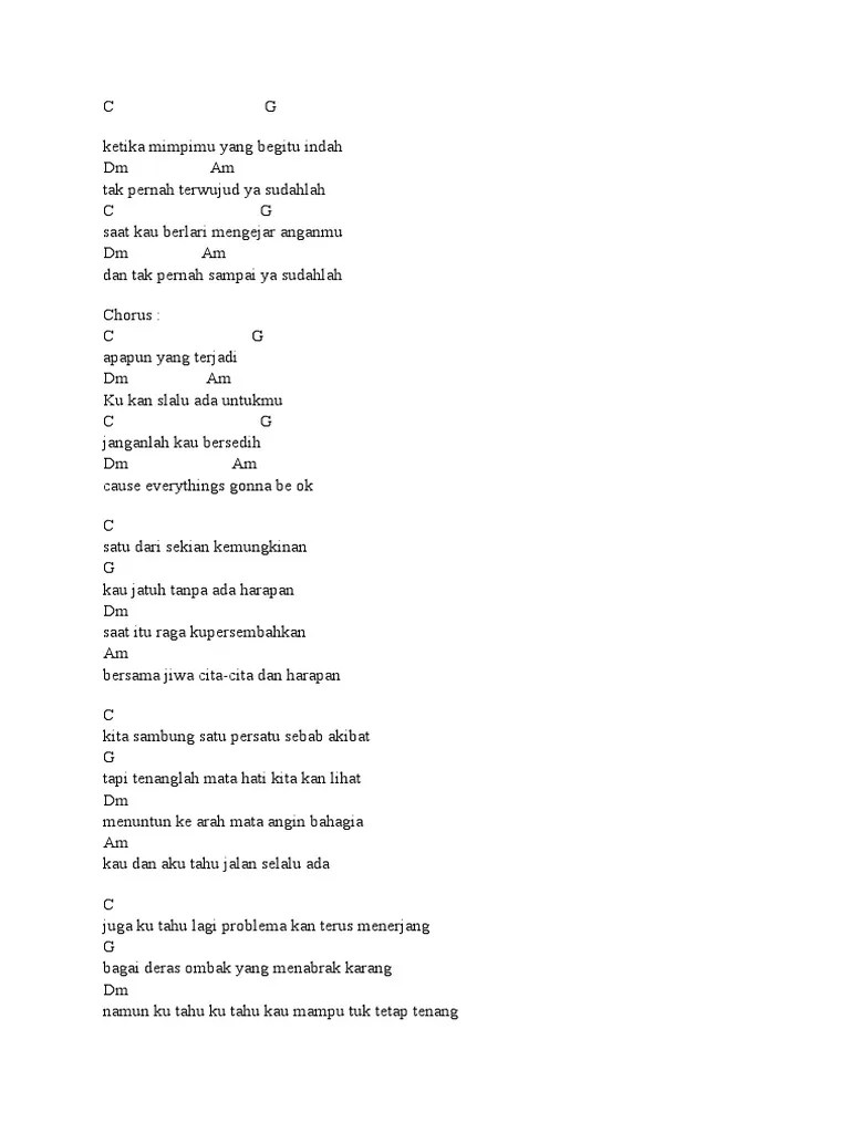 C g dengarkan aku wahai sayangku am em dengarkanlah isi hati ku f c hanya kamu semangat hidupku g hanya kamu.